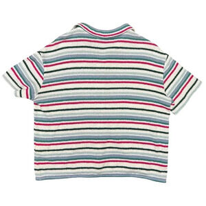 ZARA Knit Top Striped Button Front Short Sleeve Collared Relaxed Fit Grandpacore