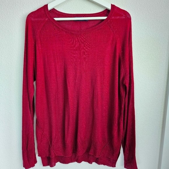 ZARA Knit Vibrant Dark Red Long Sleeve Top. Size Large