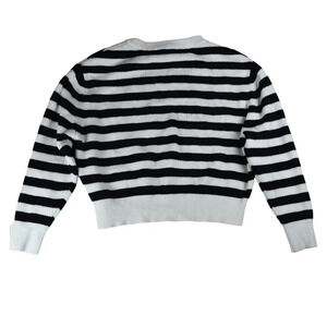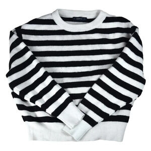 ZARA Knit Women's Cropped Sweater Black White Stripe Crewneck Nautical French M