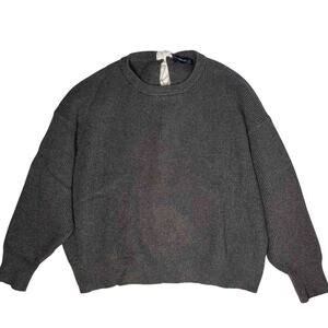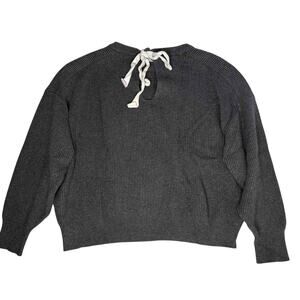 ZARA Knit Women’s Sweater Large Gray Ribbed Long Sleeve Back Tie Bow Pullover