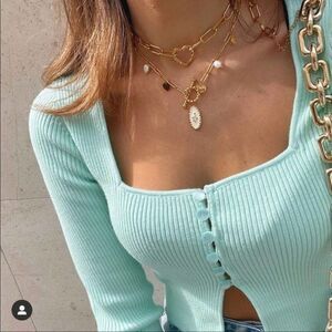 ZARA Knit Cropped Jacket Top Cardigan Mint Green