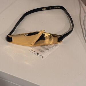 Zara belt made of leather with a width of 0.6 inches (1.5 cm). Large metal buckle.