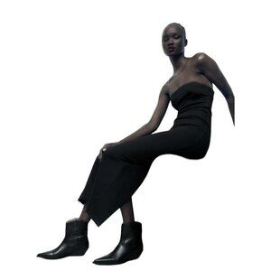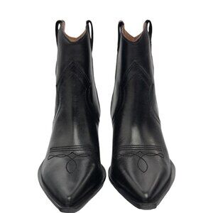 ZARA LEATHER COWBOY ANKLE BOOTS WITH SHORT LEG BLACK SIZE 6 | 1121/010