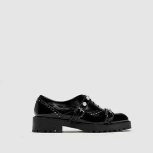 ZARA LEATHER DERBY SHOES W/ PEARLS & STUDS NEW
