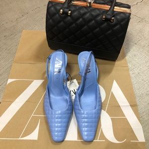 💙💙💙 ZARA LEATHER Heeled Quilted Shoes Sandals, 40, NWT