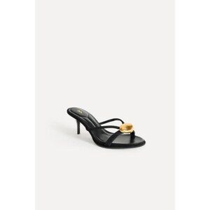 Leather sandals. Straps with metal detail on the front. Mid stiletto heel. Round toe.