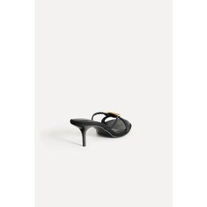 Leather sandals. Straps with metal detail on the front. Mid stiletto heel. Round toe.