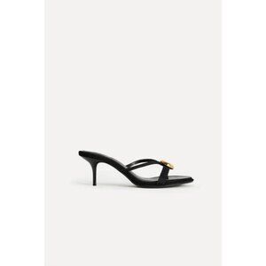 Leather sandals. Straps with metal detail on the front. Mid stiletto heel. Round toe.