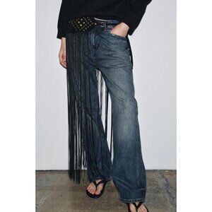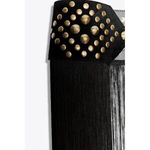 ZARA LEATHER STUDDED FRINGED CORSET BELT