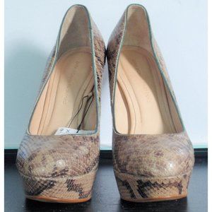 ZARA LEATHER TAUPE TAN SNAKESKIN PLATFORM PUMP 7.5 NWT