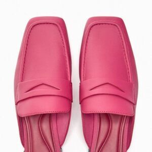 ZARA LEATHER MULE LOAFERS Fuchsia