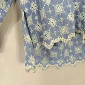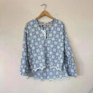 ZARA LIGHT BLUE CONTRAST FLORAL EYELET EMBROIDERED BLOUSE