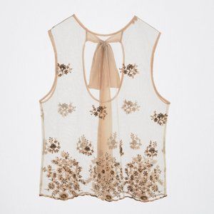 ZARA LIMITED EDITION LINGERIE COLLECTION SHEER EMBELLISED BORDUURSELS TOP BLOUSE