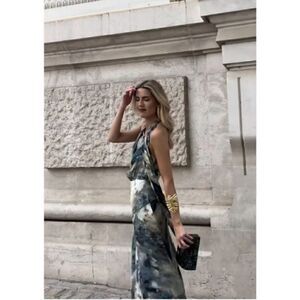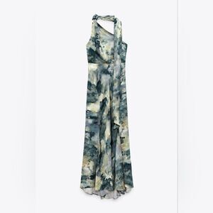 ZARA LIMITED EDITION PRINTED DRESS MULTICOLORED scarf strap halter