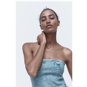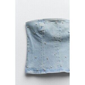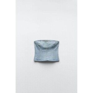 ZARA LIMITED EDITION REINSTONE CORSET SS23 MID-BLUE DENIM SIZE S