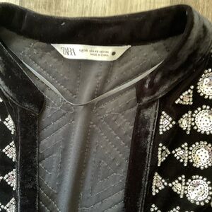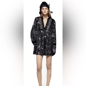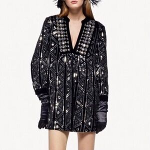 ZARA LIMITED EDITION SEQUINED VELVET V-NECK, MINI DRESS, BLACK, SIZE XS