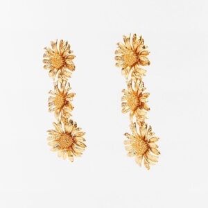ZARA LIMITED EDITION TRIPLE DAISY FLOWER DROP EARRINGS GOLD
