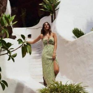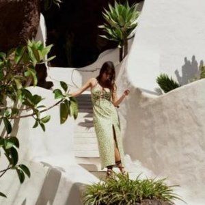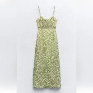 ZARA LINEN BLEND FLORAL PRINT MIDI DRESS
