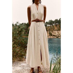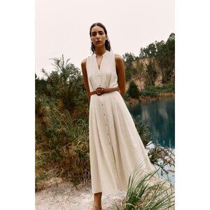 ZARA LINEN BLEND MIDI DRESS WITH BELT