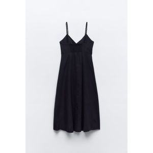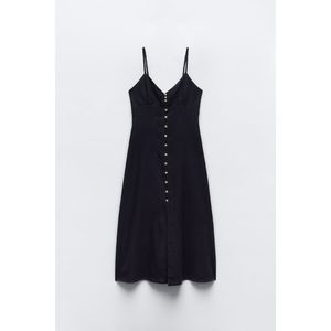 ZARA LINEN BLEND MIDI SLIP DRESS NAVY BLUE
