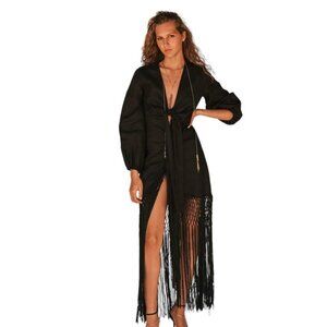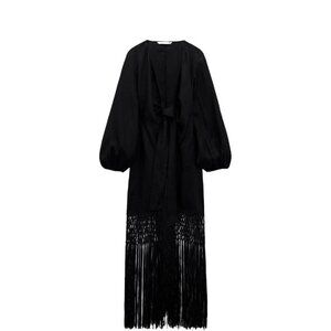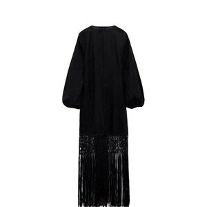 ZARA LINEN DRESS WITH FRINGING - LIMITED EDITION BLACK SIZE 7491/908