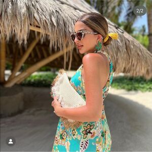 Fluid sleeveless halter dress. Open back detail. Back closure with tonal lined buttons.