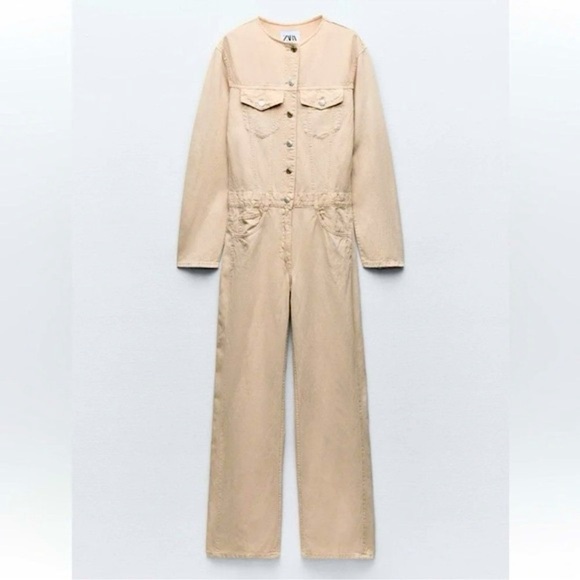 ZARA LONG FLOWY CREAM JUMPSUIT SZ Large NWOT