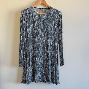 ZARA LONG SLEEVE SHIFT DRESS PRINTED WOMENS SIZE S SWING NAVY BLUE WHITE
