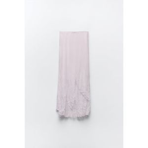 High waisted long skirt. Wrinkled fabric. A-line silhouette with front slit.