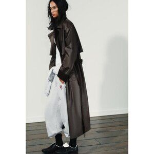 ZARA LONG WAXED TRENCH COAT WITH CORDUROY CUFFS