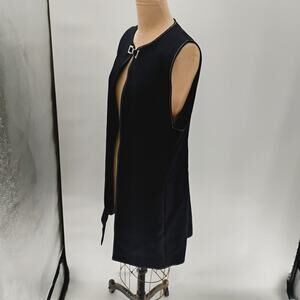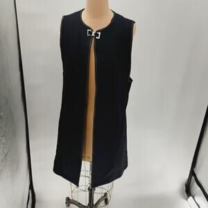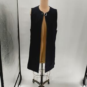 ZARA LONG dark blue vest open clasp contrast stitch long lined vest open front