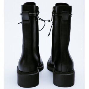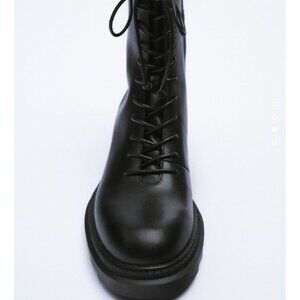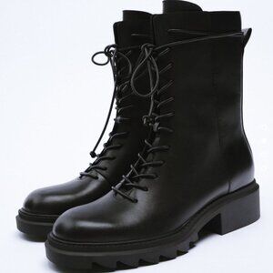 LOW HEEL LACED LEATHER ANKLE BOOTS - Black