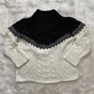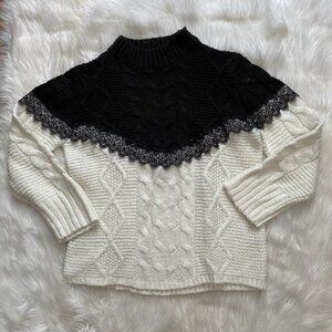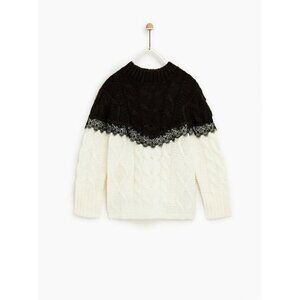 ZARA Lace Cable Knit Sweater Crop Cream Black 11-12