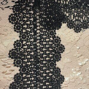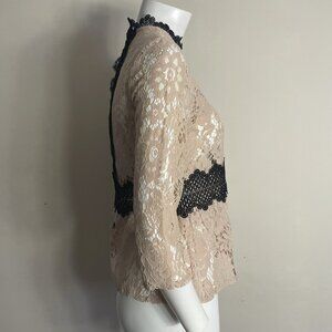 ZARA Lace Sheer Top XS Beige Black Floral High Neck Victorian Romantic Boho Lacy