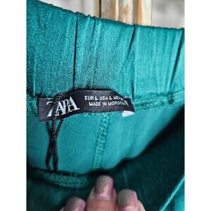 Zara ladies silky wide leg green pull on pants with elastic waist size large. These pants are perfect for the holiday season, dress them up or down. These measure 13.5" waist stretches comfortably to 15" with a rise of 11.5" and inseam of 29.5". No stains, fading or signs of wear.