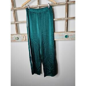 ZARA Ladies Silky Wide Leg Green Pants Pull On Ladies size Large
