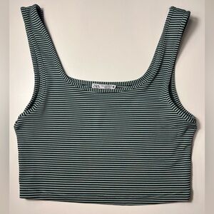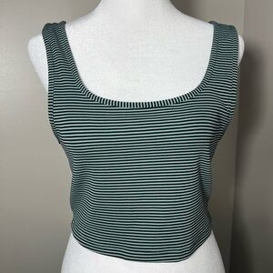 ✨ZARA Large Striped Sage Green and Black stretchy cropped Tank Top