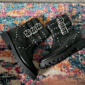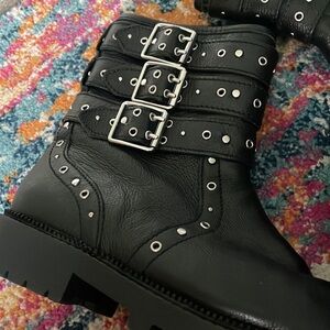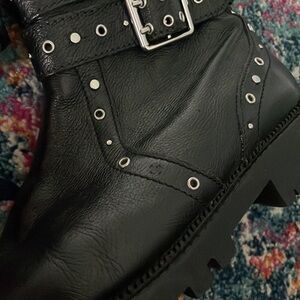 ZARA Leather Ankle Boots/Biker, Black with Buckles size 38