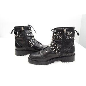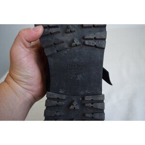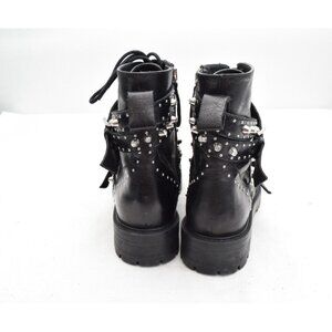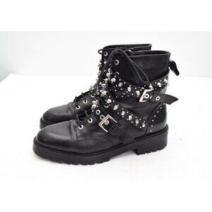 ZARA Leather Biker Moto Buckle Boots Black Size 40 Studded Lace Up 9