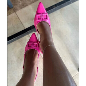 ZARA Leather Heels with Front Buckle NWT | Fuchsia Slingback Size 7.5