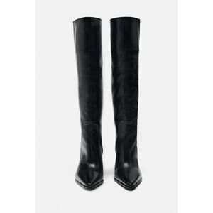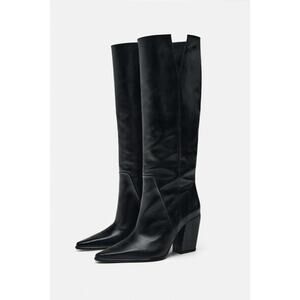 zara boots, leather boots, pull-on boots, black knee-high boots, minimalist style, spanish leather, classic fashion, chic fall outfit, power dressing, night out look