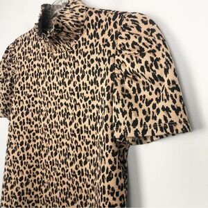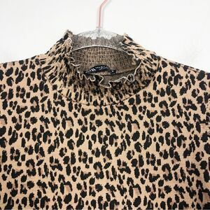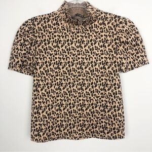 ZARA | Leopard Animal Print Puff Sleeve Smocked Turtleneck Top Women’s Size M