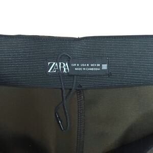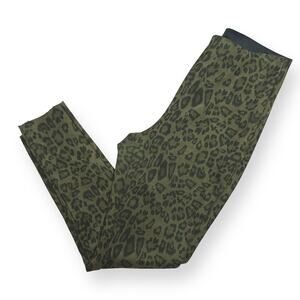 ZARA Leopard Print Skinny Ponte Pants Banded Waist High Rise Green Brown Small