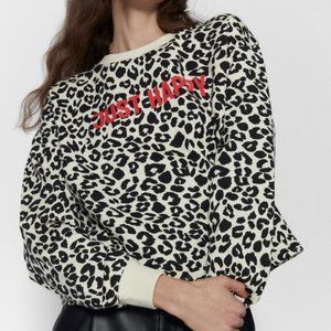 ZARA Leopard Print Sweatshirt Cropped Crewneck L