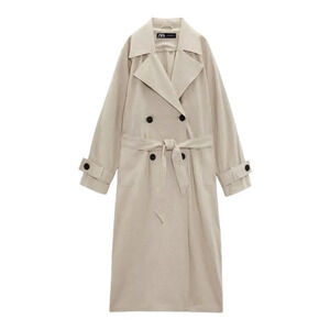 ZARA | Light Beige | LINEN BLEND BELTED TRENCH