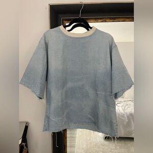 ZARA Light Blue Distressed Jean Crew Neck Shirt