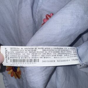 ZARA Light Blue Linen Floral Embroidered Off Shoulder Dress Women Medium