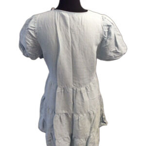 ZARA Light Denim Blue V Neck Layered Dress Small S Linen Blend Babydoll