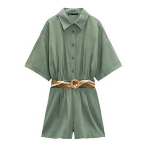 ZARA | Light Khaki | BRAIDED BELT SHORT JUMPSUIT