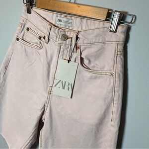 ZARA Light Pink Denim Shorts Size 2 Bermuda Denim -Raw Hem -High Waist - NEW!